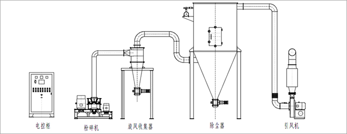 物料由料门经螺旋输送器进入粉碎室,被高速旋转的刀片剪切粉碎,通过负压风运的方法把物料运入旋风分 离器,袋式除尘器、排出物料粉尘由吸尘箱经布袋过滤回收,生产过程中无粉尘飞扬,且能提高物料的利用 率,降低企业成本。 备注:各型号超微粉碎机需要加配相当型号的空气压缩机,因为空压机在全国各地均可以采购,所以